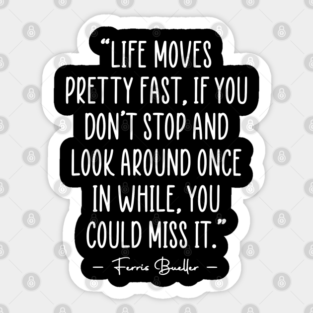 Ferris Buellers Day Off Life Moves pretty fast if you dont stop and look around once in a while you could miss itBy. Dont be afraid to rest but never quit. Ive said it before and Ill say it again.